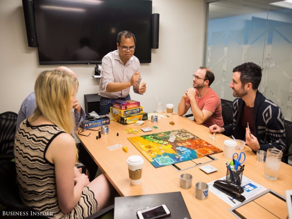 From swinging around in the gym to playing some fun, old-fashioned board games, here’s what these employees do at the office when they aren’t working: