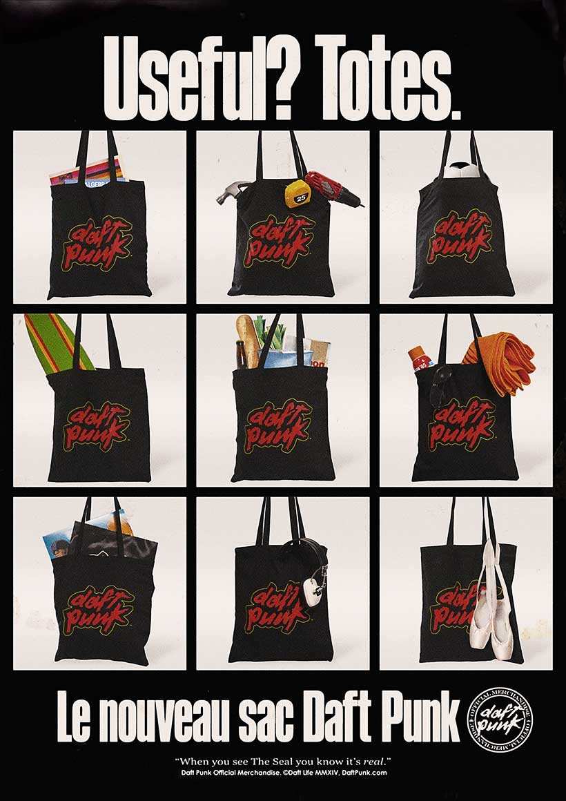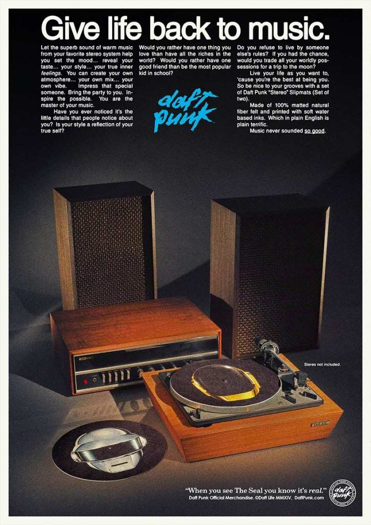 A new example of that can be found in their merch ads they launched recently, selling you Daft Punk-branded Frisbees, T-shirts, posters, belt buckles, figurines, yoyos, pens and skate decks. Yes, all those things you can’t really live without.